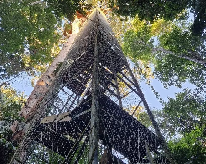 Am Nachmittag geht es weiter zu einem der Wachtürme der Lodge, die 20 und 42 Meter hoch sind und errichtet wurden, um nach Vögeln und anderen Tieren, die hoch oben leben, Ausschau zu halten. Hier oben haben Sie eine hervorragende Aussicht auf den Regenwald und können sich auf den wunderschönen Sonnenuntergang freuen. Wenn Sie die Wachtürme nicht erklimmen möchten, kann das Programm vor Ort angepasst werden.