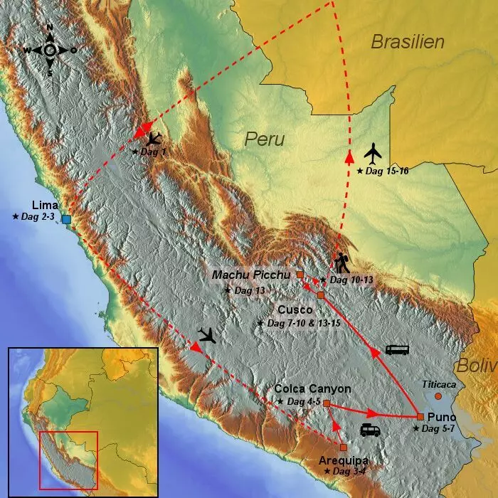 Heute fliegen Sie ab und es geht mit Zwischenlandung(en) nach Peru.