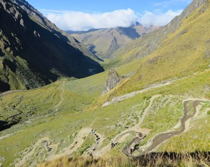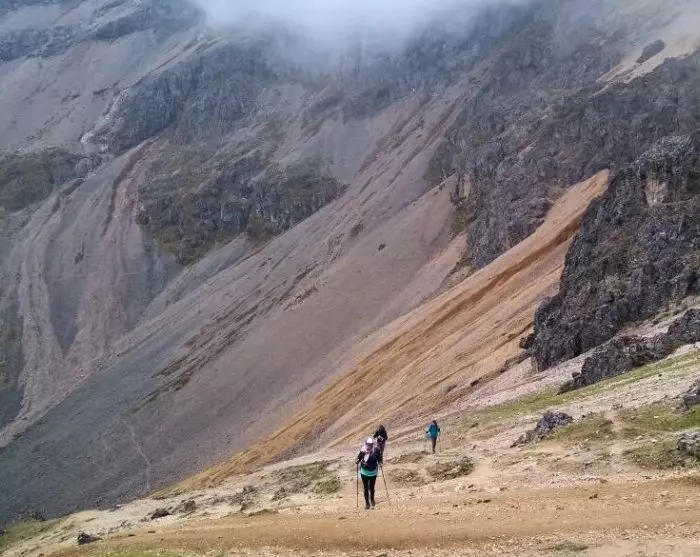 Bei gutem Wetter können Sie einen Blick auf La Veronica (5.750 Meter), einen der höchsten Berge der Bergkette Urubamba, und viele weitere Vilcabamba-Gipfel in der Ferne erhaschen. Sie kommen an kleinen Bergdörfern und Gebieten mit Nebelregenwald vorbei, in denen es viele seltene Blumen und Orchideen gibt. Ab und zu können Sie vielleicht auch einen kleinen Kolibri beobachten. Sie wandern weiter in Richtung des schneebedeckten Gipfels Tucarhuay (5.910 Meter). Dort verändern sich der Wald und die dichte Vegetation. Sie kommen ins Tal Soraypampa, eine Graslandschaft, in der Sie zu Mittag essen und das Lager für die Nacht aufstellen.
