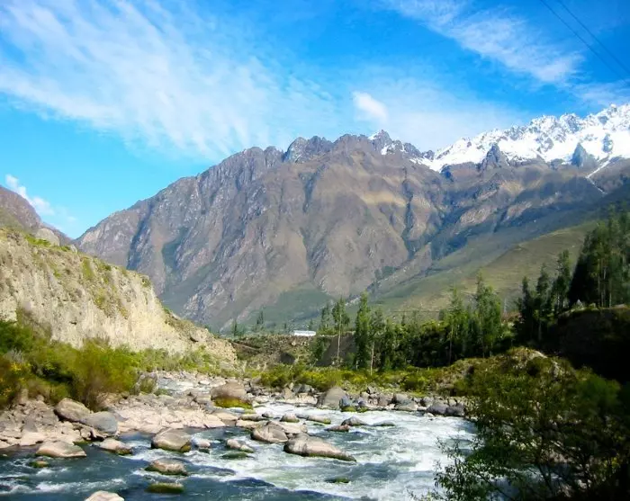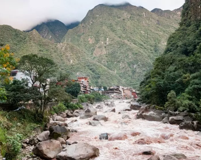 Nach dem Mittagessen in der Nähe von Lucmabamba werden Sie von einem Auto zum Fluss Urubamba und einem Wasserkraftwerk gefahren, wo Sie in einem Zug einsteigen und zur Stadt Aguas Calientes fahren. Die Transportzeit beträgt ca. 2 Stunden.