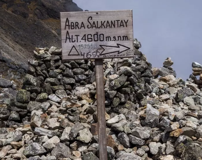 Heute ist der härteste Tag der Wanderung. Sie beginnen den Tag mit einem nahrhaften Frühstück, sodass Sie genügend Energie haben, um die steile Route zum Salkantay-Pass auf 4.600 Metern Seehöhe hinaufsteigen zu können. Es geht zum höchsten Punkt der Wanderung – ein herausfordernder Aufstieg. Denken Sie daran, in Ihrem eigenen Tempo zu gehen und Pausen zu machen, wenn Sie welche benötigen. Vom Pass aus werden Sie mit einer unbeschreiblichen Aussicht auf den wunderschönen schneebedeckten Gipfel des Berges Salkantay in 6.271 Metern Höhe belohnt. Nach einer wohlverdienten Pause beginnt der Abstieg. Sie können erneut die unterschiedliche Vegetation bewundern, die sich langsam von Gold zu einem grünen Nebelregenwald hin ändert.