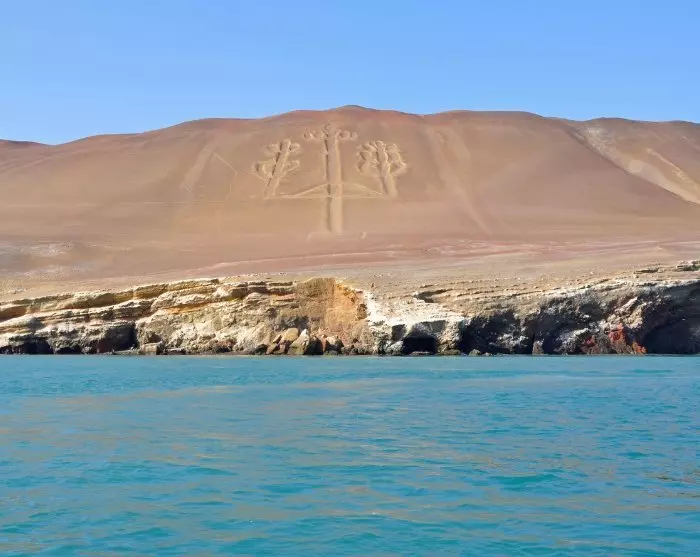 Während der Fahrt sehen Sie auch „La Candelabra“ am nördlichsten Punkt der Halbinsel Paracas. La Candelabra ist eine riesige Zeichnung im trockenen Wüstensand, die einen dreiarmigen Kerzenhalter oder Kaktus darstellt, der in der Chavín-Kultur ein Symbol für Macht war. Es ist nicht bekannt, wer die Zeichnung gemacht hat oder was ihr Zweck ist.