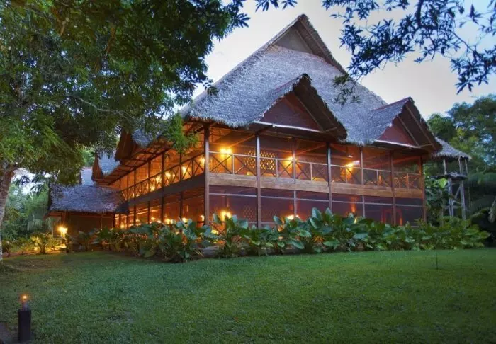 Die Lage der Lodge ist einzigartig, zwischen der Reserva Nacional Tambopata und dem Fluss Madre de Dios. Sie wurde auf einem 819 Hektar großen Grundstück errichtet, das einst eine Kakao- und Gummibaumplantage war. Die Lodge liegt von Puerto Maldonado ca. 8 Kilometer flussaufwärts am Fluss Madre de Dios.