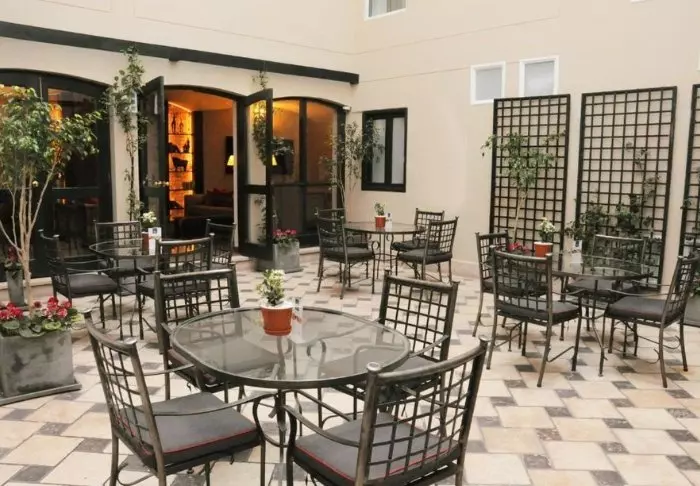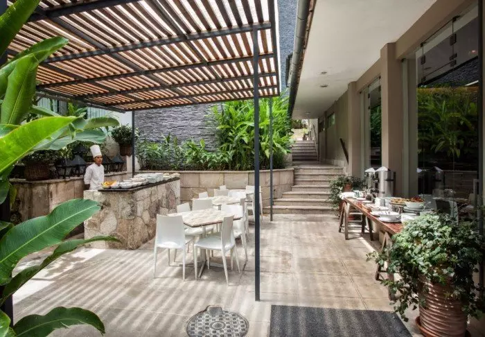 In diesem wunderschön erhaltenen Kolonialgebäude finden Sie sieben dekorative Innenhöfe, die jeweils unterschiedlichen Zwecken dienen. Zum Beispiel gibt es einen für Mahlzeiten im Freien, der zum Restaurant gehört, einen anderen für Fitness und Yoga, um im Urlaub aktiv zu bleiben, und einen dritten, der als Lounge-Bereich zum Entspannen und für gesellige Treffen dient.