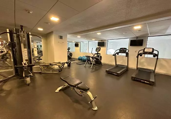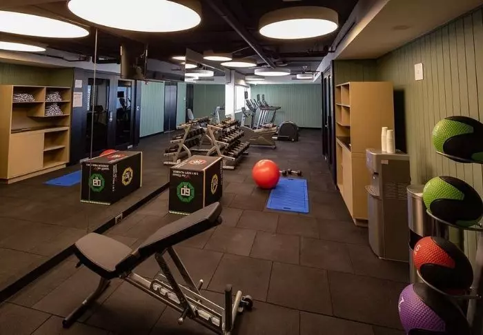 Es gibt auch einen Fitnessraum, damit Sie sich in Form halten können.