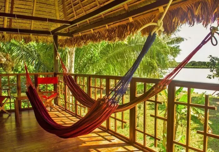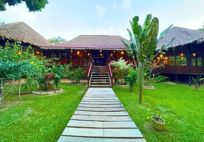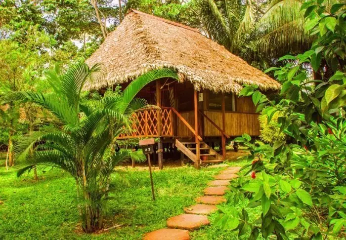 Die Lodge bietet 27 komfortable Bungalows sowie eine „Casa Grande“ mit 4 separaten Zimmern. Die Gebäude sind zur Gänze aus Holz und schlicht eingerichtet, verfügen aber alle über ein Bett mit Moskitonetz, ein eigenes Badezimmer mit Warmwasser, einen Safe und über eine eigene Terrasse mit Hängematte, in der Sie sich zum Rauschen des Flusses und den exotischen Geräuschen des Dschungels entspannen können.