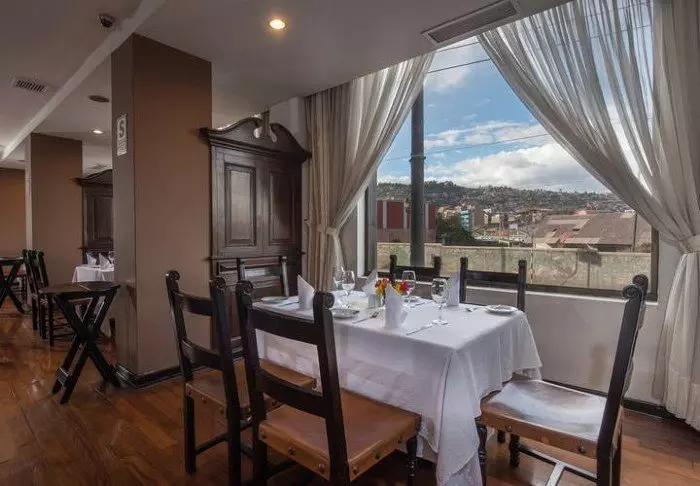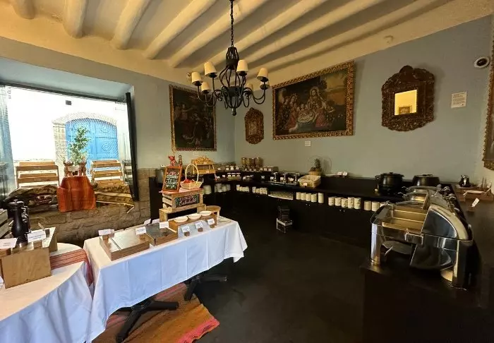 Das im Preis inbegriffene Frühstück wird im Restaurant des Hotels, dem Taypicamaña am Marktplatz der Stadt, serviert.