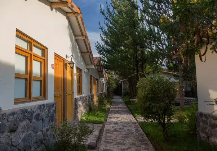 Inmitten wunderschöner Natur und idyllischer Umgebung befindet sich die Colca Lodge, die direkt am Ufer des Colca-Flusses liegt. Der Ort strahlt Ruhe und Entspannung aus. Es ist ein perfekter Ort, um sich zurückzuziehen und neue Energie zu tanken.