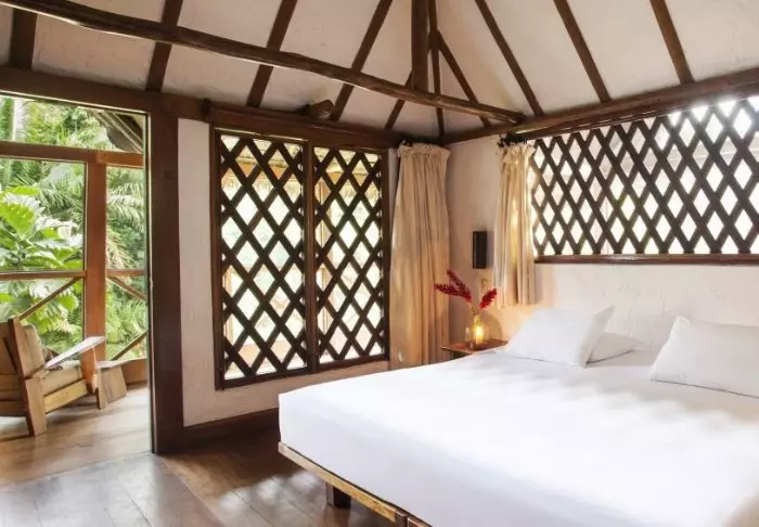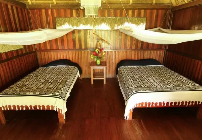 Lediglich 25 wunderschön eingerichtete Bungalows gibt es hier. Sie alle wurden auf Pfählen aus Holz errichtet, sodass sie nicht überschwemmt werden, wenn die heftigen, tropischen Regenschauer einsetzen. Die Hütten besitzen hervorragende Betten mit Moskitonetzen, Deckenventilator und eigenem Badezimmer mit Warmwasser, Bademänteln und Toilettartikeln.