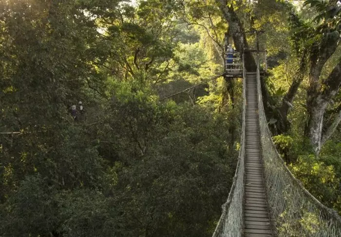 Tag 2: Kanufahrt auf dem Sandoval-See in der Reserva Nacional Tambopata, bei der Sie nach den exotischen Tieren und Vögeln des Regenwaldes Ausschau halten. Am Nachmittag Spaziergang über den zur Lodge gehörenden „Canopy Walk“ zwischen den Baumwipfeln. Nach Einbruch der Dunkelheit Spaziergang durch den Regenwald mit Guide.