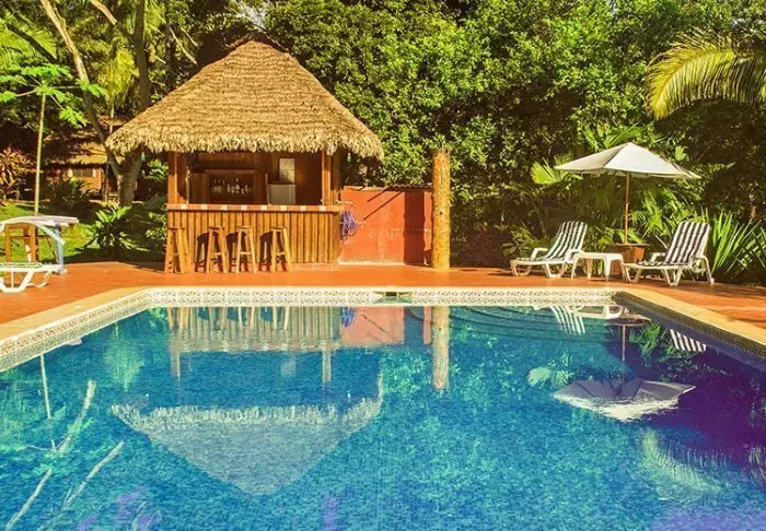 Wenn Sie sich nach einem aufregenden Ausflug erfrischen möchten, können Sie in den kleinen Swimmingpool im grünen Garten springen. Dort finden Sie zudem eine Poolbar, in der Sie kühle Getränke und leckere Drinks bestellen können.
