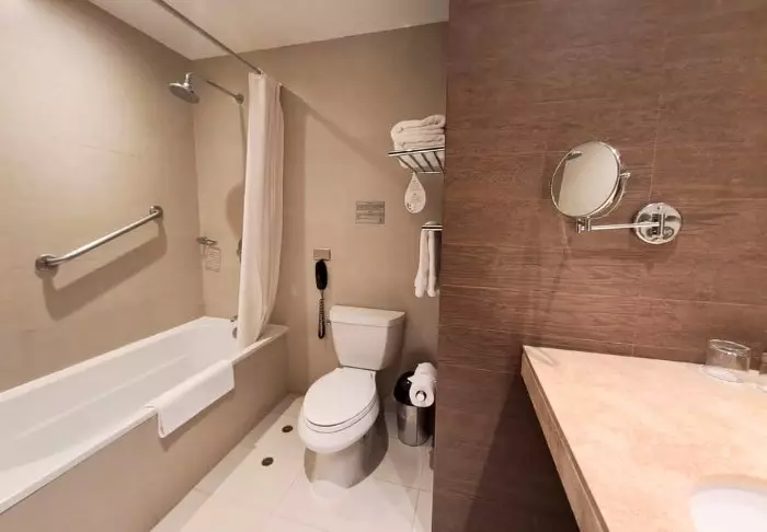 Die Zimmer sind modern und ansprechend eingerichtet und bieten alles, was man so braucht: ein herrliches Bett zum Schlafen, ein TV-Gerät, WLAN, Klimaanlage, Minibar, Wasserkocher für Kaffee oder Tee, Safe und ein eigenes Badezimmer mit Toilette. Und keine Sorge – die Fenster sind schalldicht. Sie werden hervorragend schlafen, obwohl Sie direkt am Flughafen sind.