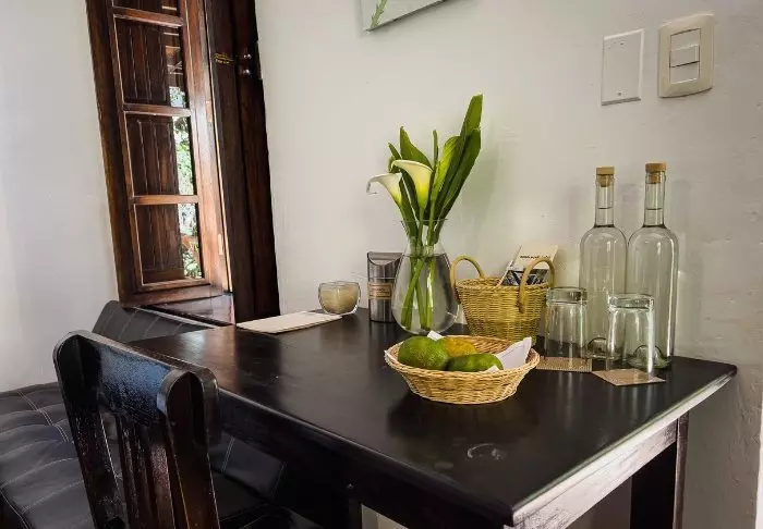 Das Hotel verfügt über 15 Zimmer, von denen jedes einzigartig mit einer malerischen Farbpalette und rustikalen Möbeln gestaltet ist. Alle Zimmer sind mit Safe, WLAN, TV, Minibar, Spender für gefiltertes Wasser, Deckenventilator, Tee- und Kaffeezubereitungsmöglichkeiten und einem eigenen Bad mit Haartrockner ausgestattet.