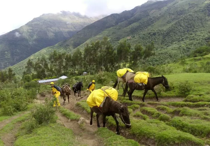 Die Zelte und Matratzen müssen Sie natürlich nicht selbst zwischen den Quartieren hin und her tragen. Das erledigen Ihr Guide und die Träger mit Transportpferden, die Sie bei der Wanderung begleiten. Sie sorgen für den Transport von allen Lebensmitteln für die Mahlzeiten, den Transport des Speisezelts und der dazugehörigen Tische und Stühle sowie für den Transport Ihres Gepäcks, das maximal 6 kg wiegen darf.