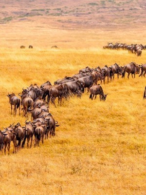 Fliegen Sie auf die Ebene der Serengeti, wo Tiererlebnisse auf Sie warten. Bei einer Safari im Ngorongoro-Krater fahren Sie durch die Landschaft, bevor Sie nach Sansibar weiterfliegen.