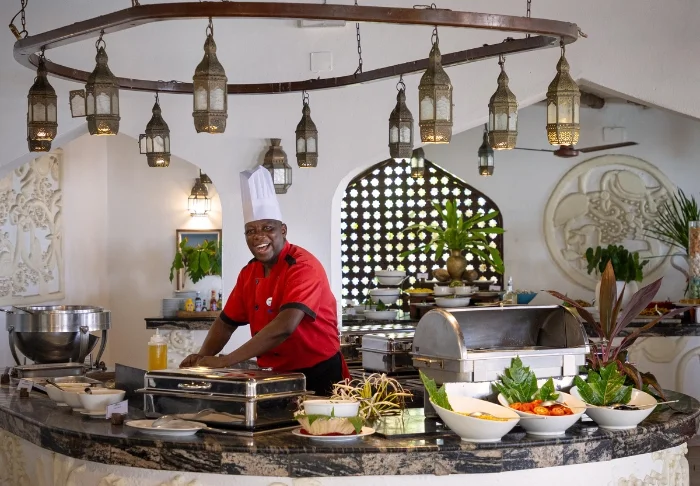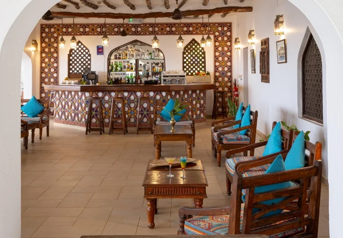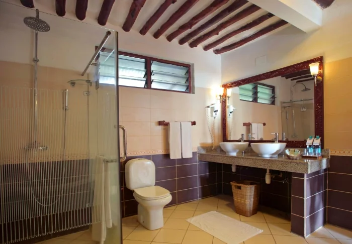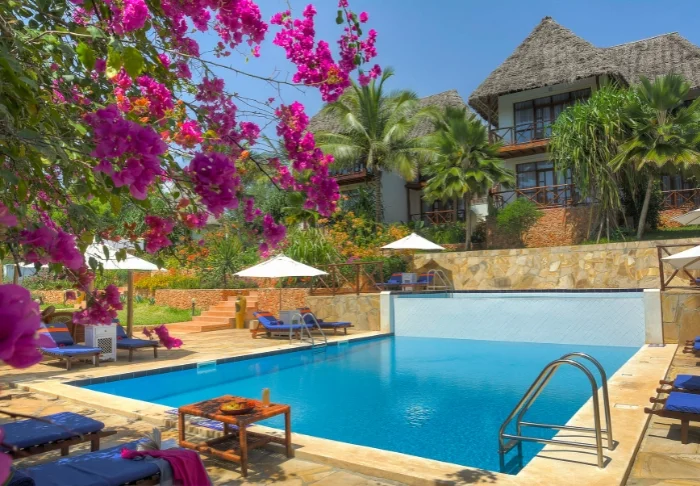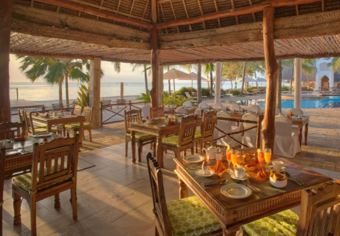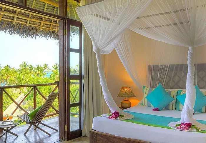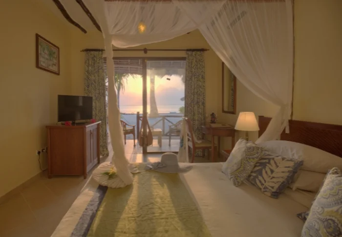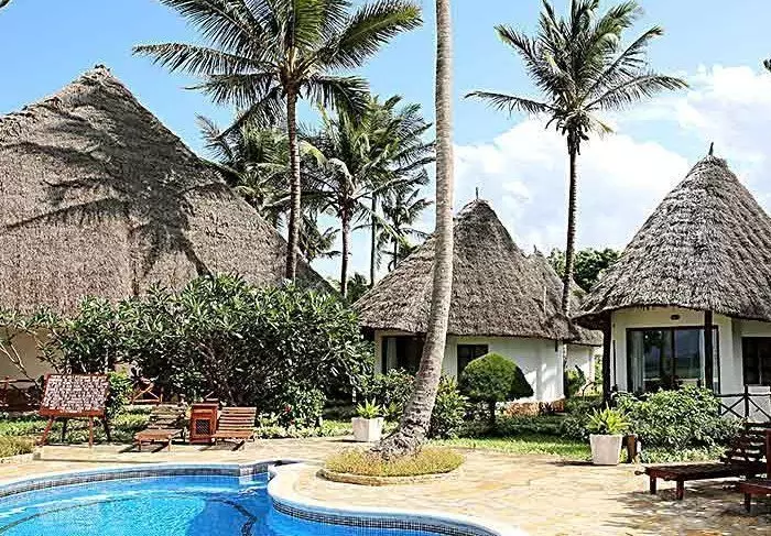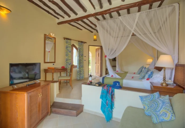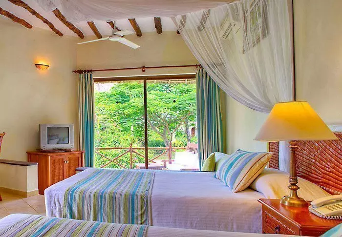 56 der Standardzimmer befinden sich in runden Hütten, die in echtem afrikanischem Stil mit Strohdächern erbaut worden sind. In jeder Hütte sind zwei Zimmer, aber jedes Zimmer kann von der gegenüberliegenden Seite der Hütte über einen separaten Eingang betreten werden. Es fühlt sich daher so an, als hätte man seine eigene Hütte. Alle Zimmer verfügen über eine eigene Terrasse, eine ansprechende Einrichtung und viel Platz. Sie sind nur wenige Gehminuten vom Pool und vom Strand entfernt.