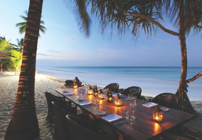 Nur wenige Meter vom kreideweißen Strand und dem türkisblauen Meer entfernt befindet sich das Hotel Sultan Sands. Vom Pool, vom Restaurant und von der gemütlichen Bar aus hat man eine fantastische Aussicht auf das Meer – die lediglich von einigen wunderschönen Palmen ein wenig verdeckt wird.