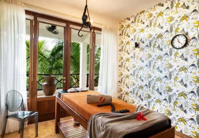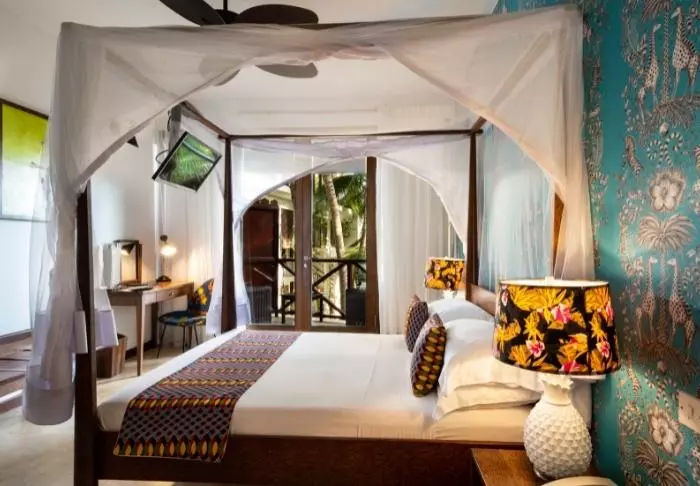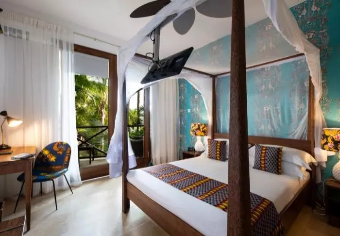 Lediglich 40 Zimmer sind vorhanden, alle eingerichtet mit Kunst an der Wand, bunten Polstern und Lampen, die einen wunderschönen Kontrast zu den Kokosholzmöbeln in den Zimmern bilden. Jedes Zimmer ist außergewöhnlich. Aber alle Zimmer verfügen über eine Klimaanlage, ein Flachbildschirm-TV-Gerät, eine Minibar, einen Safe und WLAN. Alle Zimmer haben außerdem einen eigenen Balkon mit Gartenmöbeln.