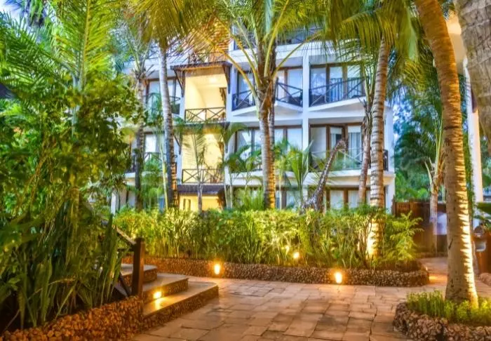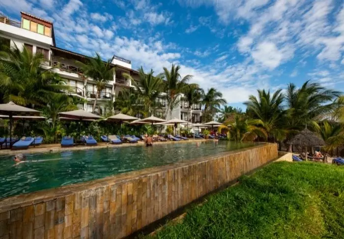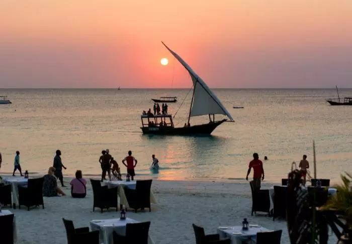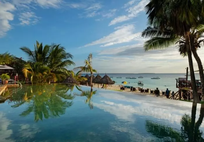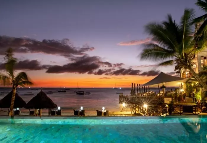 Genießen Sie die entspannte und ungestörte Atmosphäre, die besonders für Paare und kleine Gruppen geeignet ist, da das Hotel ein Mindestalter von 16 Jahren verlangt. Der Strand ist kreideweiß, das Wasser warm und klar, und die kleine Stadt Nungwi hat kleine Cafés, unzählige Einkaufsmöglichkeiten und viele verschiedene Aktivitäten zu bieten.