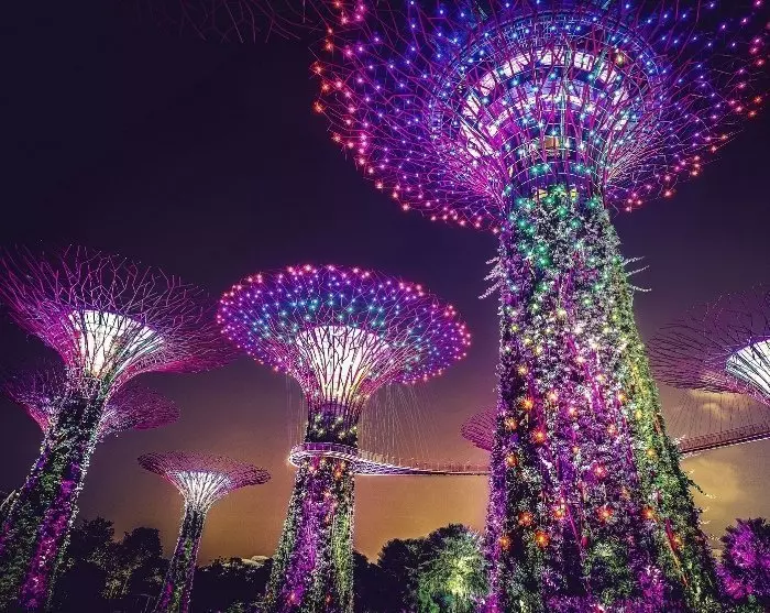 Da Sie sowieso in der Gegend sind, können Sie die wunderschöne Aussicht auf die Gardens by the Bay genießen, wo die Licht- und Musikshow Garden Rhapsody den Garten in allen Farben des Regenbogens beleuchtet.