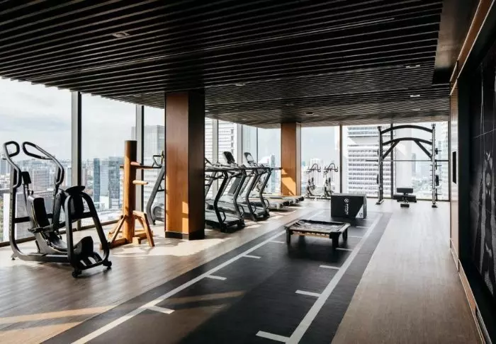 Zum Hotel gehört auch ein eigener Fitnessraum, das Sky Gym. Dort trainieren Sie auf einer der obersten Etagen mit Blick auf die gesamte Stadt.