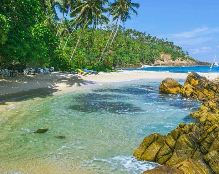 Die malerischen Strände und die laue Brise in Mirissa verbreiten echte Ferienstimmung. Sie können sich am Strand erholen, während Sie den Sand durch die Zehen rieseln lassen oder sich mit einem guten Buch unter einer der Kokospalmen entspannen. Die guten Bedingungen, insbesondere um Perrot Rock herum, im Windschatten der Strömung und Wellen laden zum Schnorcheln ein, um knallbunte Fische und Meeresschildkröten zu beobachten. Wenn Sie es zum Baden etwas ruhiger lieben, bietet sich die natürliche Lagune bei Secret Beach an – eine kleine landschaftliche Perle mit Klippen, die Schutz vor den Kräften des Meeres bieten und für perfekte Verhältnisse zum Schwimmen sorgen.