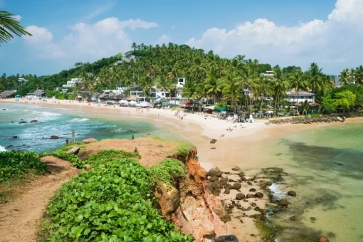Die pulsierende Hauptstraße, die Galle Road, führt mitten durch den Ort und ist gesäumt von einladenden Restaurants, Tauchschulen und kleinen, liebevoll eingerichteten Geschäften. Vor Ihnen breiten sich die tropischen Strände mit Blick auf das Meer aus, während sich dahinter eine üppige, authentische Landschaft mit kleinen Häusern und Ständen erstreckt, an denen frisches Obst und erfrischende Kokosnüsse verkauft werden.