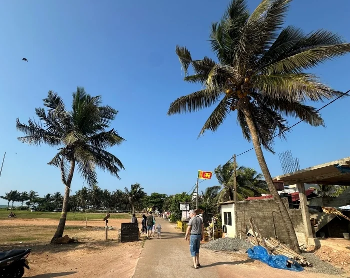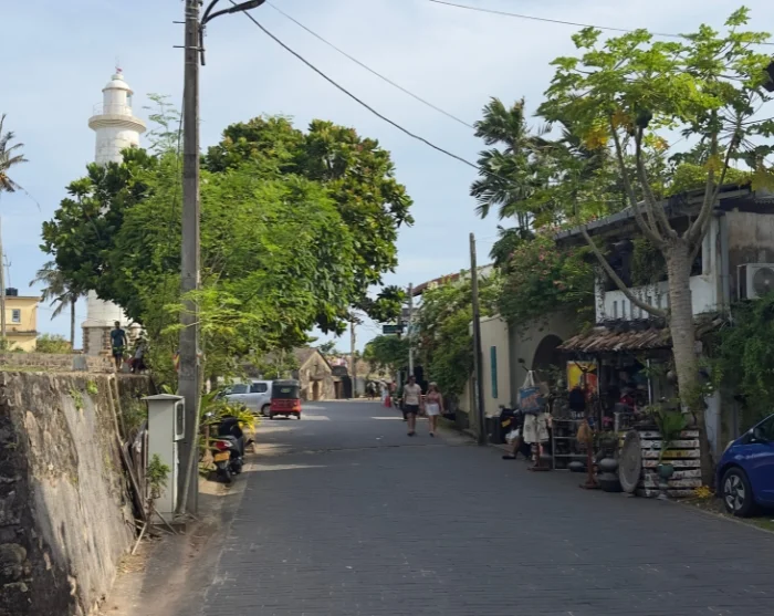 Die pulsierende Hauptstraße, die Galle Road, führt mitten durch den Ort und ist gesäumt von einladenden Restaurants, Tauchschulen und kleinen, liebevoll eingerichteten Geschäften. Vor Ihnen breiten sich die tropischen Strände mit Blick auf das Meer aus, während sich dahinter eine üppige, authentische Landschaft mit kleinen Häusern und Ständen erstreckt, an denen frisches Obst und erfrischende Kokosnüsse verkauft werden.