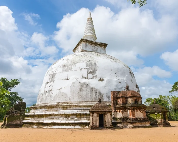 Unterwegs kommen Sie an vielen kuppelförmigen Stupas vorbei, wie Rankot Vihara, Kiri Vihara Dagoba und Pabalu Vehera, die in der Landschaft verstreut sind, während der besondere Satmahal Prasada einer Maya-Pyramide zum Verwechseln ähnlich sieht. Sie sehen auch das uralte Bewässerungssystem, ein lebendes Zeugnis der Vision von König Parakramabahu, dass kein Tropfen Regen verloren gehen darf. Das enorme System mit seinen riesigen Stauseen und Kanälen, die über kleine Kanäle alle mit Polonnaruwa verbunden sind, ist faszinierend.