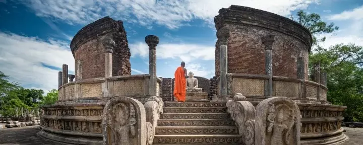 Anschließend gehen Sie weiter zur Klosterruine und den vielen Stupas der Stadt. Unter anderem kommen Sie an dem 70 Meter hohen Jetavanarama-Stupa vorbei, einem der größten Bauwerke des Altertums und dem ikonischen, weißen Ruwanwelisaya-Stupa, von dem es heißt, dass dort die größte Sammlung Buddha-Reliquien liegt. Hier bekommen Sie einen seltenen Einblick in die in Anuradhapura nach wie vor lebendige Praxis des Buddhismus.