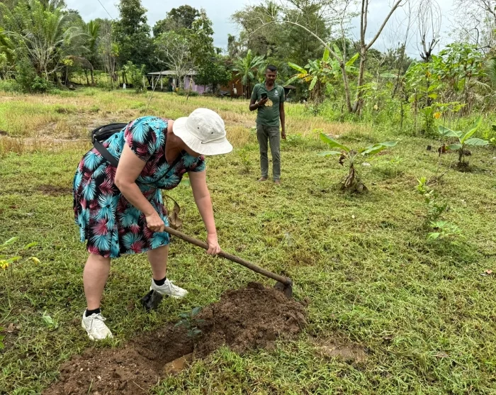 Ein örtlicher Gastgeber heißt Sie mit frisch gepresstem Saft willkommen, bevor Sie mit einem Jeep ins Zentrum des Dorfes fahren. Erfahren Sie, wie das Projekt aus Forschungsergebnissen hervorgegangen ist, die zeigten, dass sri-lankische Elefanten den Geschmack und den Duft von Orangen nicht mögen. Durch das Pflanzen von Orangenbäumen rund um Häuser und Felder können die Dorfbewohner den Duft der Ernte überdecken und die Elefanten fernhalten. Diese sanfte Lösung schützt jetzt Leben und Ernten und stärkt die Biodiversität und die lokale Wirtschaft.