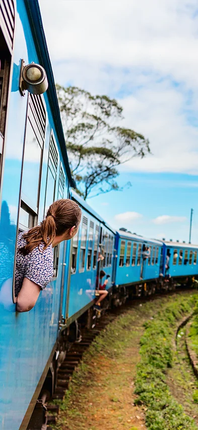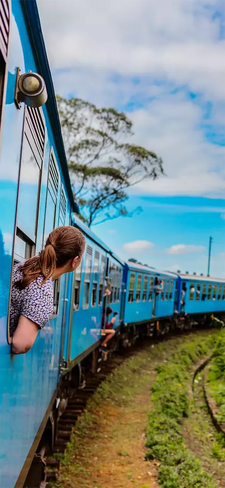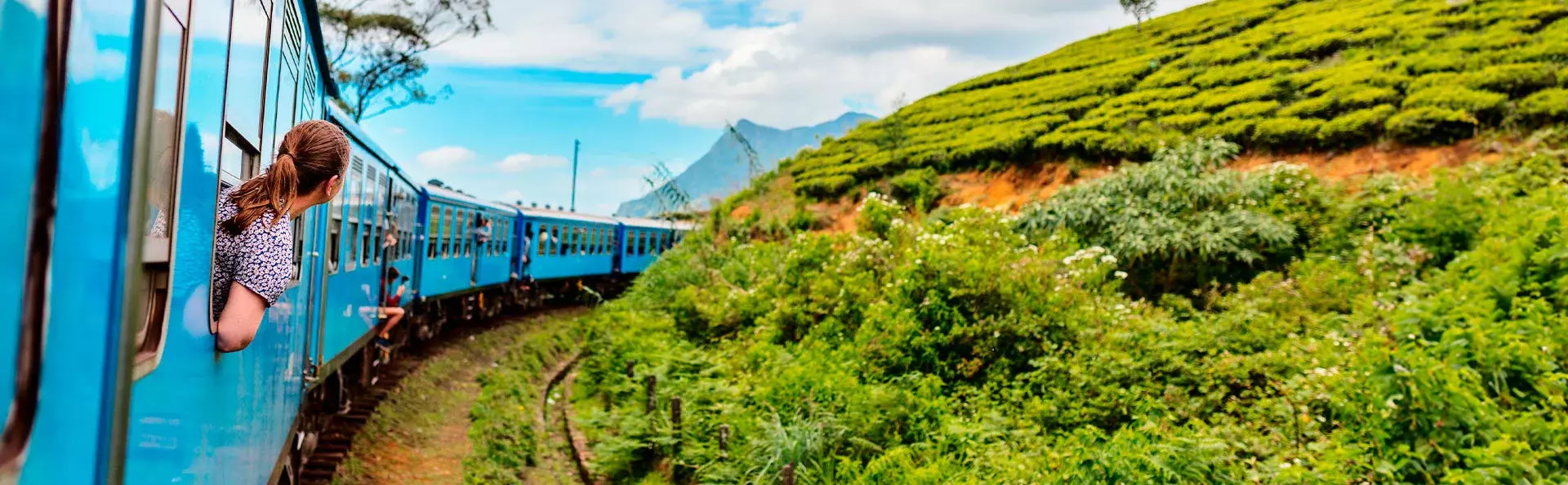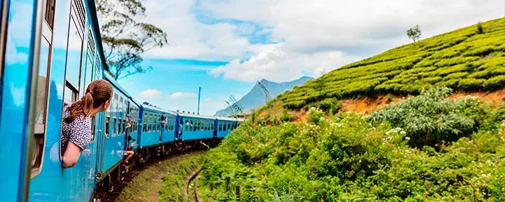 Bei der Ankunft in Nanu Oya steigen Sie in den klassischen Zug ein, der sich bald gemächlich durch Sri Lankas üppige Highlands windet. Machen Sie es sich bequem und genießen Sie Ihre mitgebrachten Snacks, während der Zug sich durch sanfte Kurven windet und Ausblicke auf lebendige grüne Teeplantagen, nebelige Bergspitzen und winzige Dörfer bietet, in denen Kinder fröhlich lächeln und winken.