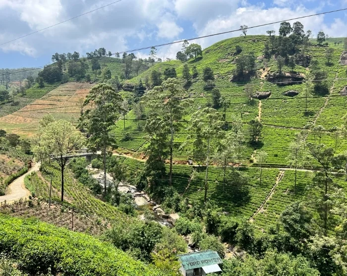 Vom Auto gehen Sie auf kleinen Pfaden über das abschüssige Gelände und können vielleicht Einheimische begrüßen, die inmitten der vielen Teeplantagen leben. Am Ende erwartet Sie die Eisenbahnbrücke mit 9 Brückenbögen, die mit ihren 30 Höhenmetern ein architektonisches Meisterwerk mitten in der fruchtbaren Landschaft darstellt.