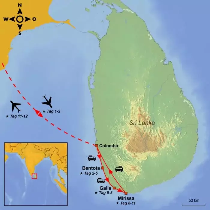 Von den weichen Sandstränden Bentotas zu den stimmungsvollen Gassen in Galle Fort und den idyllischen Buchten bei Mirissa. Eine Reise, bei der einzigartiges Strandleben und die farbenfrohe Kultur Sri Lankas im Mittelpunkt stehen.