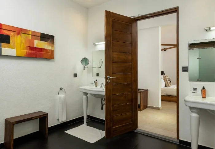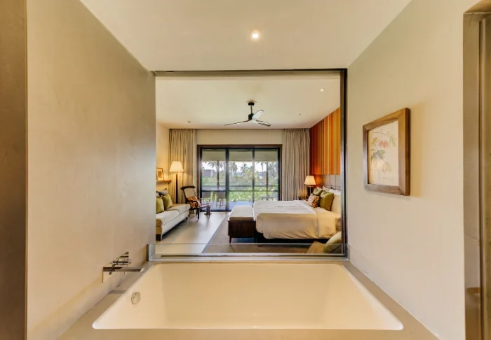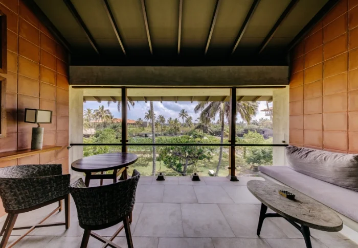 Standardmäßig übernachten Sie in einem Luxury Room, der mit sri-lankischen Details eine warme und einladende Atmosphäre schafft. Von Ihrem privaten Balkon oder Ihrer Terrasse genießen Sie einen herrlichen Blick in den grünen Garten des Hotels oder auf den faszinierenden Indischen Ozean. Innen erwarten Sie viel Platz und komfortable Ausstattung wie Klimaanlage, WLAN, Safe, Minibar, Kaffee- und Teezubereitungsmöglichkeiten sowie TV. Im eigenen Badezimmer stehen Ihnen außerdem luxuriöse Pflegeprodukte, ein Bademantel und eine Regendusche zur Verfügung.
