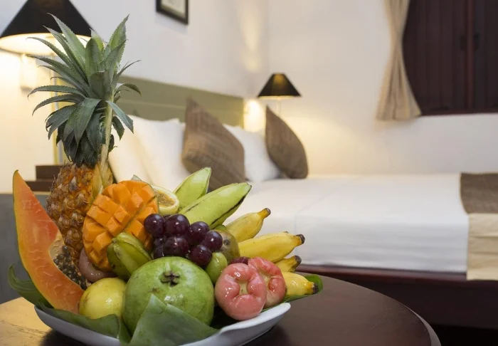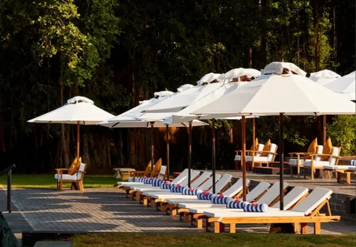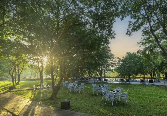 Das Resort bietet insgesamt 55. mind. 52 m2 geräumige Zimmer. Alle Zimmer besitzen eine eigene Veranda zu den herrlichen, gepflegten Gärten hin. Dort können Sie verschiedene Zugvögel oder endemische Vogelarten beobachten. Die Zimmer sind schön mit dunklen Holzmöbeln, Textilien in herrlichen Farmen und eleganten Papierlaternen eingerichtet. Sie alle sind mit Klimaanlage, Deckenventilator, WLAN, Telefon, Safe, Sitzecke und Schreibtisch eingerichtet. Es gibt außerdem einen Wasserkocher, sodass Sie sich eine Tasse Tee oder Kaffee machen und ihn auf der Veranda genießen können. Das Badezimmer ist mit einer Regendusche, einem Föhn und kostenlosen Toilettenartikeln ausgestattet.