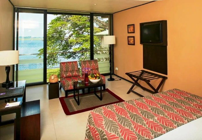 Sie übernachten in einem Deluxe-Zimmer, das Sie mit warmen Farbtönen und natürlichen Details empfängt – perfekt abgestimmt auf den großartigen Blick über den See und den üppigen Poolbereich des Hotels. Alle Zimmer sind komfortabel mit Klimaanlage, WLAN, Minibar, Safe, Kaffee- und Teezubehör sowie TV ausgestattet. Im Badezimmer erwarten Sie zudem Pflegeprodukte und eine Dusche.