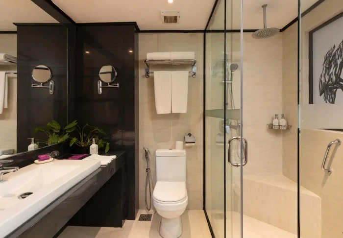 Alle Zimmer sind mit Klimaanlage, WLAN, Telefon, TV, Bügeleisen und Bügelbrett, Minibar sowie Tee- und Kaffeezubereitungsmöglichkeiten ausgestattet. Im Bad finden Sie eine separate begehbare Dusche und eine großzügige Badewanne, außerdem einen Haartrockner, Bademantel, Hausschuhe sowie eine Auswahl an kostenfreien Pflegeprodukten.