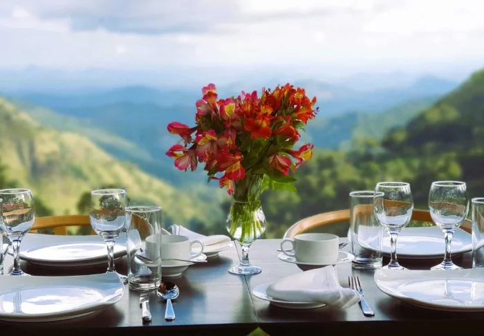 Vom Restaurant des Hotels aus sieht man ebenfalls auf die grünen Berge. Hier werden Gerichte aus der sri-lankischen und der westlichen Küche sowohl als Buffet als auch à la carte serviert. Im Licht des Sonnenuntergangs kann man ein Getränk, ein Glas Wein oder ein Bier von der Bar genießen. Sie können außerdem ein Tuk-Tuk in die Stadt Ella nehmen, wo es mehrere tolle Restaurants und Bars gibt.
