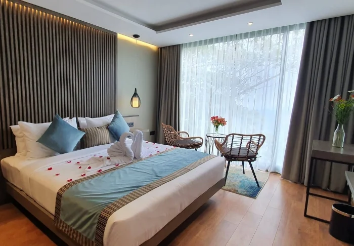 Während Ihres Aufenthalts sind Sie in einem Deluxe-Zimmer untergebracht, das mit traditionellem Holzmobiliar und bunten Textilien eingerichtet ist. Diese Details verleihen dem Raum eine warme, einladende Stimmung. An alles wurde gedacht, um Ihnen einen angenehmen Aufenthalt zu bieten: Klimaanlage, WLAN, Safe, TV, Telefon sowie Möglichkeiten zur Zubereitung von Tee und Kaffee stehen zur Verfügung. Das Badezimmer ist mit einer begehbaren Dusche und kostenlosen Pflegeprodukten ausgestattet. Auf Ihrem eigenen Balkon genießen Sie ein privates Refugium – ideal, um bei sanftem Vogelgezwitscher und dem leisen Rauschen des Windes in den Bäumen zu entspannen.