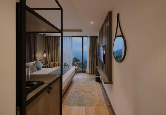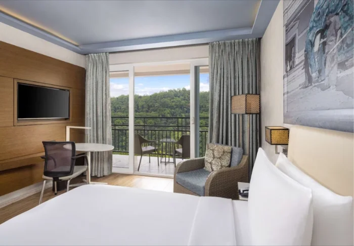 Sie übernachten in einem Deluxe Zimmer, das im modernen, urbanen Stil gestaltet ist und durch große Panoramafenster besonders viel Tageslicht ins Innere lässt. Der Ausblick auf die beeindruckende Landschaft ist faszinierend – es fällt schwer, dem Wunsch zu widerstehen, hinaus auf den eigenen Balkon zu treten und einfach für einen Moment die Gedanken schweifen zu lassen. Ihr Zimmer ist bestens ausgestattet und bietet Klimaanlage, WLAN, TV, Tee- und Kaffeezubereitungsmöglichkeit, Minibar und einen Safe. Im Bad finden Sie eine begehbare Dusche, Hausschuhe sowie kostenfreie Pflegeprodukte.