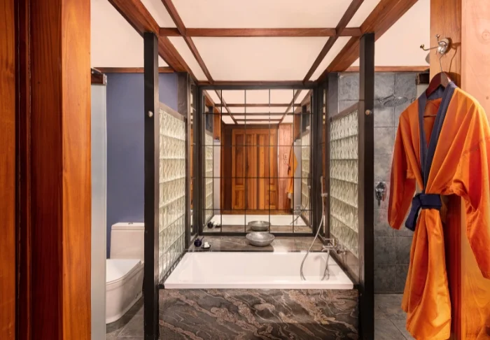 Das Design des Hotels ist von japanischem Minimalismus inspiriert – besonders spürbar im Deluxe-Zimmer, in dem Sie übernachten werden. Das Zimmer ist in beruhigenden Farbtönen gehalten und mit viel Liebe zum Detail eingerichtet. Natürliche Materialien und geschmackvolle Holzarbeiten schaffen eine stilvolle, gleichzeitig rustikale Atmosphäre. Zu den Annehmlichkeiten zählen Klimaanlage, WLAN, Deckenventilator, Minibar, Safe, Tee- und Kaffeezubereiter sowie ein Fernseher. Das Badezimmer ist mit einer begehbaren Dusche, Bademantel und Slippern sowie ausgewählten Pflegeprodukten ausgestattet. Genießen Sie bereits am Morgen von Ihrem privaten Balkon oder Ihrer Terrasse bei einer Tasse Ceylon-Tee den Panoramablick.