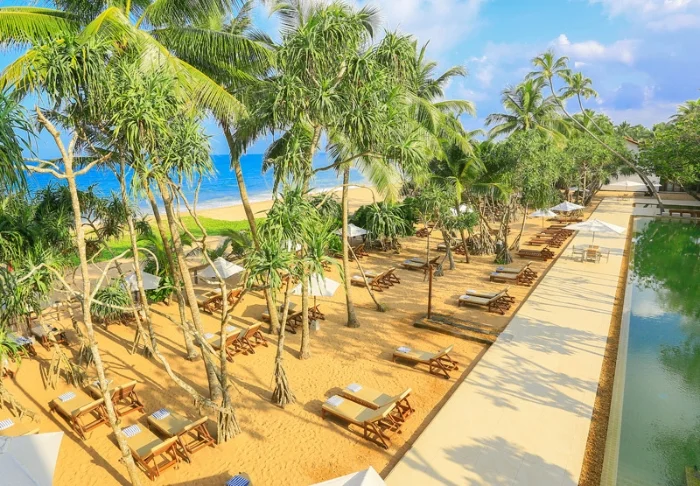 Das Resort erstreckt sich über eine weitläufige Anlage bis hinunter zum feinsandigen Strand von Bentota, wo Sie sich auf erlebnisreiche Tage voller Möglichkeiten freuen dürfen. Hier erwarten Sie sowohl Ruhe und Erholung als auch Verwöhnmomente sowie ein vielfältiges Angebot an Aktivitäten – sowohl innerhalb des Resorts als auch in unmittelbarer Umgebung mit Restaurants, Geschäften und Wassersport.