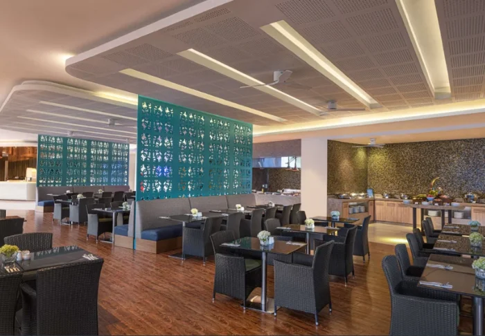Im Hotel gibt es drei Restaurants und Bars. Im Restaurant Fusion werden ein erlesenes Frühstücksbuffet sowie asiatische und internationale Gerichte aus frischen und handverlesenen Rohwaren serviert. Ganz oben im Hotel befindet sich die gemütliche Bommu Rooftop Bar, wo Sie in bequemen Möbeln auf der Dachterrasse Cocktails, Drinks und leichte Snacks im Schein des Sonnenuntergangs genießen können. Von hier aus hat man außerdem ein phänomenales Panorama auf die Bucht, den Strand und die Swimmingpools des Hotels. Zwischen dem Strand und dem großen Swimmingpool befindet sich der Shoreline Beach Club. Dort können Sie den kleinen Hunger und Ihren Durst zu Mittag stillen.