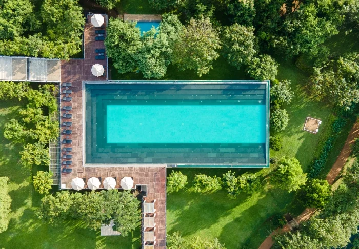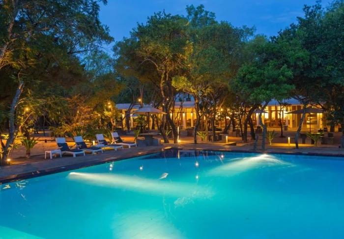Wenn Sie nicht gerade auf Safari gehen, bietet das Poolareal des Resorts eine ruhige Oase im Grünen. Ziehen Sie ein paar erfrischende Bahnen oder lassen Sie es sich auf einer Sonnenliege mit einem kühlen Getränk von der Poolbar gut gehen. Für Familien gibt es zudem ein separates Kinderbecken – perfekt für Entspannung und Spiel gleichermaßen. Wer auch im Urlaub aktiv bleiben möchte, findet im modern ausgestatteten Fitnessraum des Resorts ideale Bedingungen.