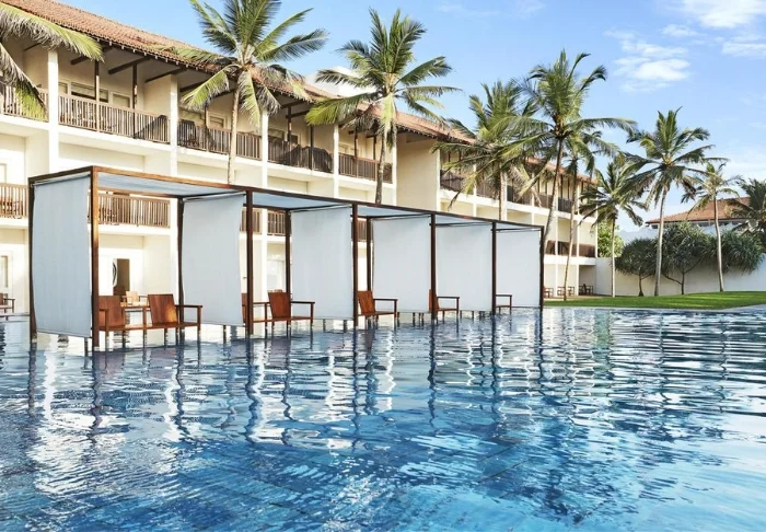 Das Cinnamon Bentota Beach verfügt über eine weitläufige Poollandschaft mit mehreren Schwimmbecken, die sich wie kleine Oasen inmitten tropischer Vegetation präsentieren.