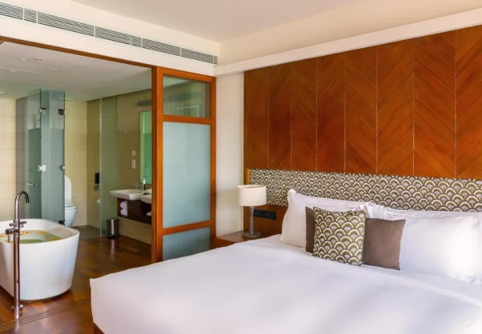 Sie übernachten in einem modern eingerichteten Deluxe-Zimmer, dessen helle und sanfte Farbtöne die tropische Umgebung widerspiegeln. Jedes Zimmer verfügt über Klimaanlage, TV, Safe, Minikühlschrank und ein Bad mit Dusche sowie kostenlosen Pflegeartikeln. Treten Sie hinaus auf Ihre private Terrasse und genießen Sie Ihren morgendlichen Kaffee, während sich die Farbpalette des Sonnenaufgangs über dem azurblauen Meer am Himmel entfaltet.