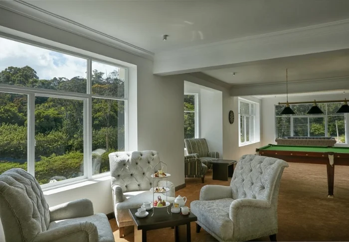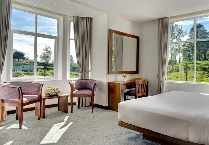 Im Herzen von Nuwara Eliya gelegen, erstreckt sich dieses historische Hotel mit beinahe königlichen Gartenanlagen, in denen englische Rosen und kunstvoll angelegte Blumenbeete blühen. Im Inneren spüren Sie den Hauch der Geschichte – breite Flure, klassische Holzmöbel und ein zeitlos elegantes Ambiente prägen das Haus.