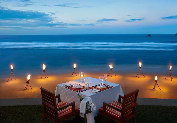 Mit Halbpension werden Sie kulinarisch verwöhnt. Das Hauptrestaurant des Hotels, Tranzfusion, bietet Ihnen ein abwechslungsreiches Buffet mit frisch zubereiteten sri-lankischen und internationalen Spezialitäten. Wenn der Tag langsam zur Nacht wird, erleben Sie von der Hotelbar aus einen traumhaften Sonnenuntergang. Die Atmosphäre ist entspannt und zu den Cocktails genießen Sie einen herrlichen Blick über den Ozean.