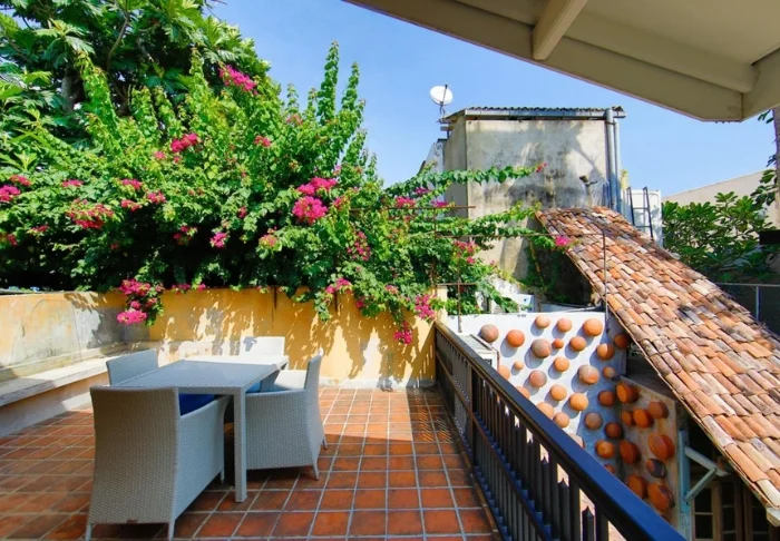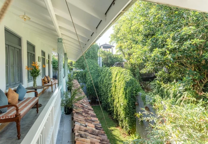 Ein Aufenthalt im Parawa House ist ein Erlebnis für sich. Das Hotel wurde über die Jahre liebevoll erhalten und bewahrt Details wie kunstvoll geschnitzte Holztüren, farbenfrohe Bleiglasfenster und architektonische Besonderheiten mit Charakter. All das verleiht dem Haus eine ganz besondere Mischung aus Nostalgie und Ruhe. Für einen weiteren Moment der Entspannung gehen Sie auf die obere Etage: Hier erwartet Sie eine kleine Sonnenterrasse, geschmückt mit leuchtend pinker Bougainvillea – der ideale Ort, um nach einem ereignisreichen Tag die Seele baumeln zu lassen.